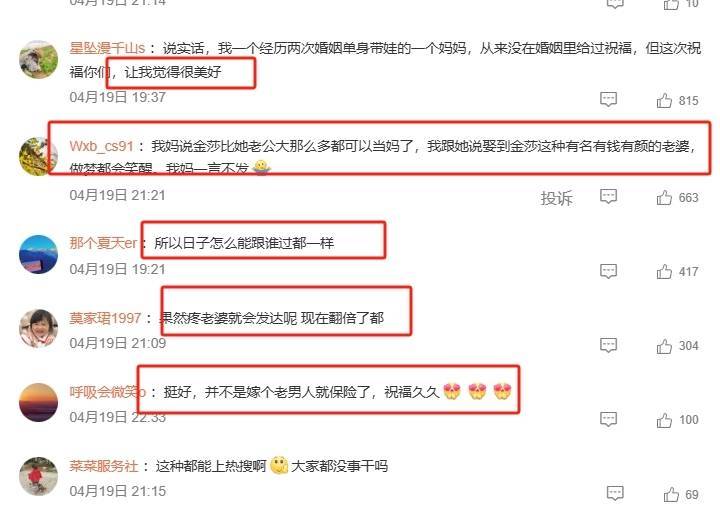 对于两人的爱情,不少网友都表示祝福,有网友表示金莎真的是吾辈楷模,祝福她找到终生幸福!